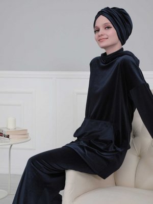 Ayşe Türban Tasarım Lacivert Kadife Bone