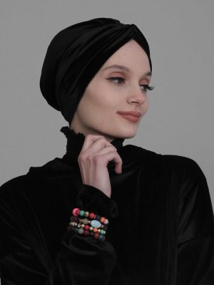 Ayşe Türban Tasarım Siyah Kadife Bone