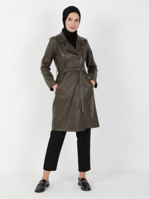 BÜRÜN Haki Deri Detaylı Kap