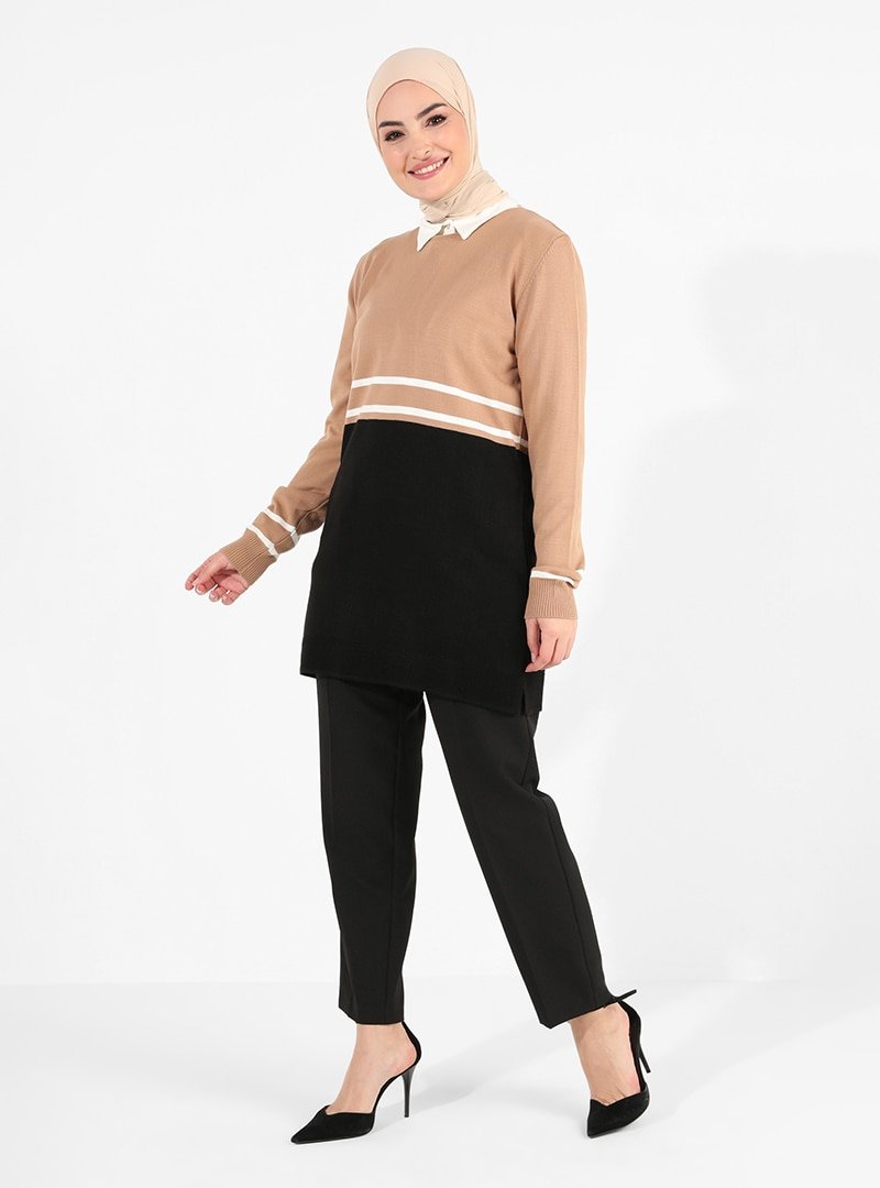 Tavin Bisküvi Bisiklet Yaka Renk Detaylı 80cm Triko Tunik