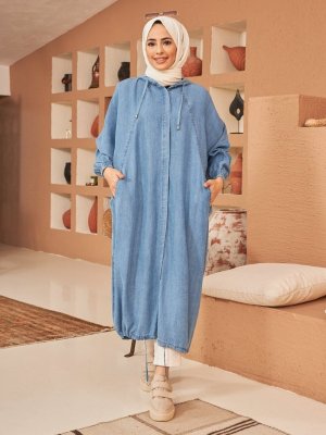 Neways Mavi Kapüşonlu Kot Tunik