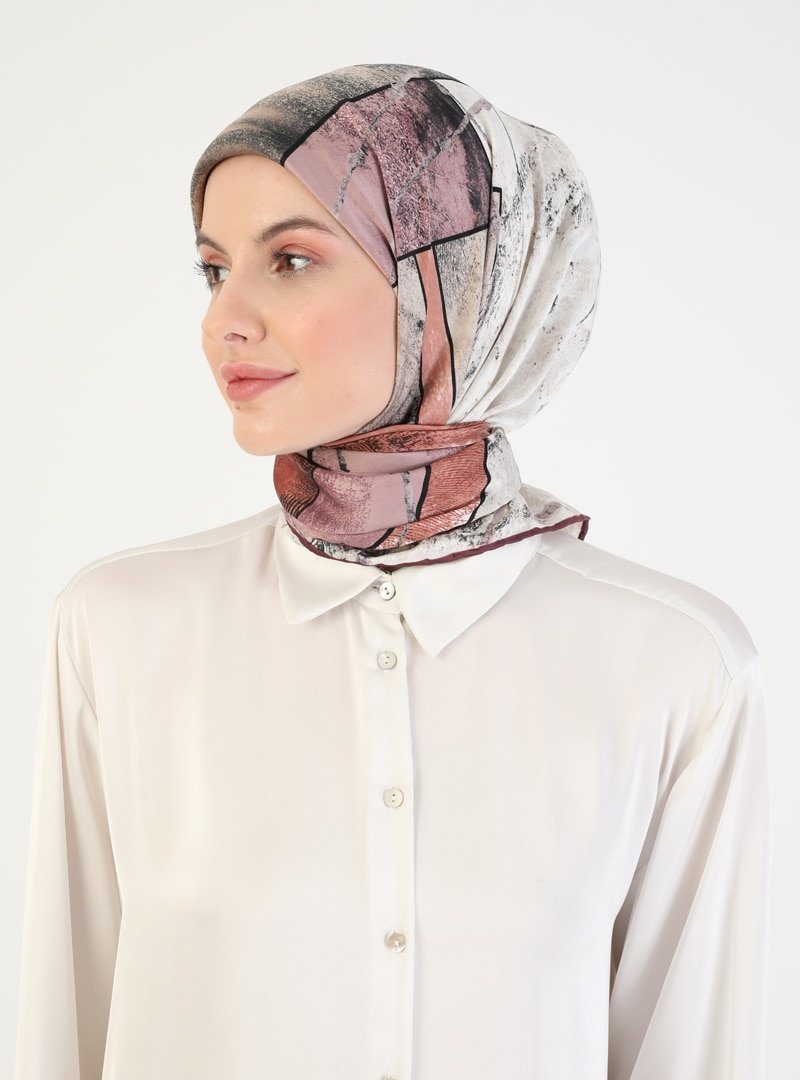 Miray Taş Gül Kurusu Dörtgen Desenli Rayon Eşarp