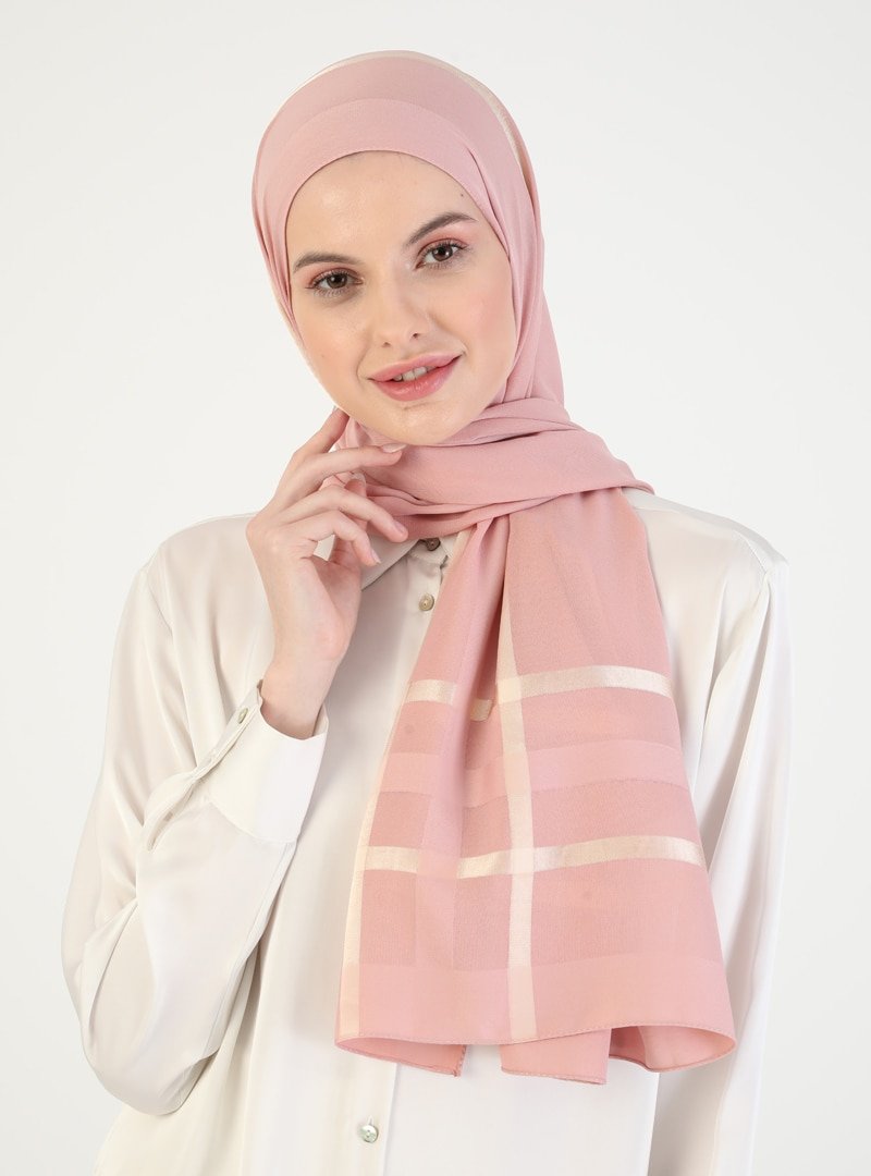 Miray Pudra Gold Çizgili Şifon Şal