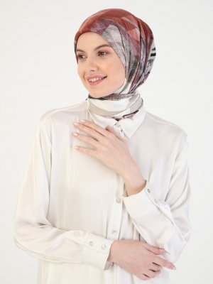 Miray Gül Kurusu Kiremit Luxury Desenli Rayon Eşarp