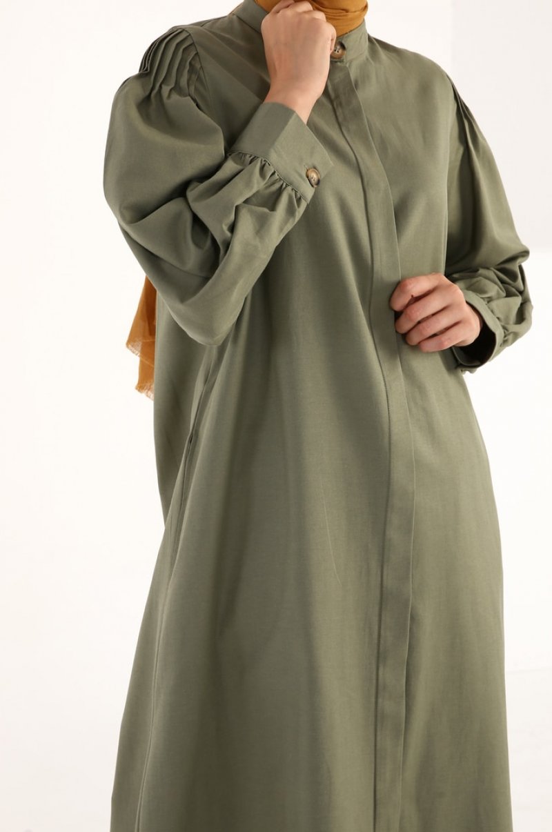 Allday Yeşil Kolu Nervürlü Cepli Pamuklu Ferace