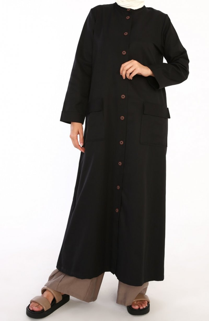 Allday Siyah Pamuk Arkası Apoletli Düğmeli Ferace