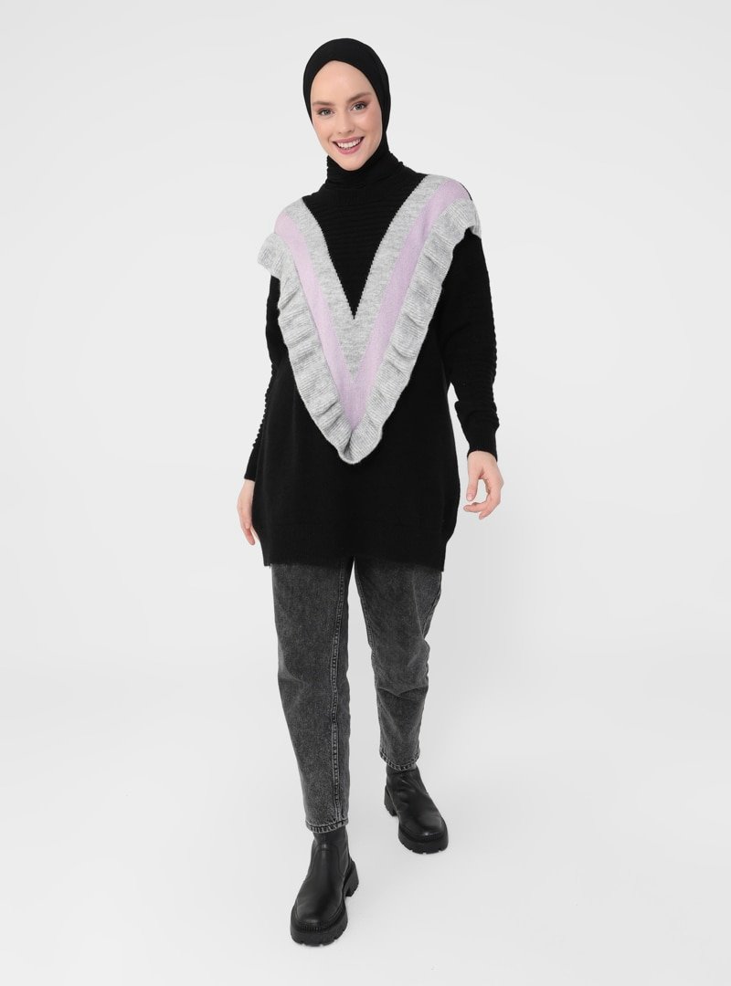 Benin Siyah Volanlı Triko Tunik