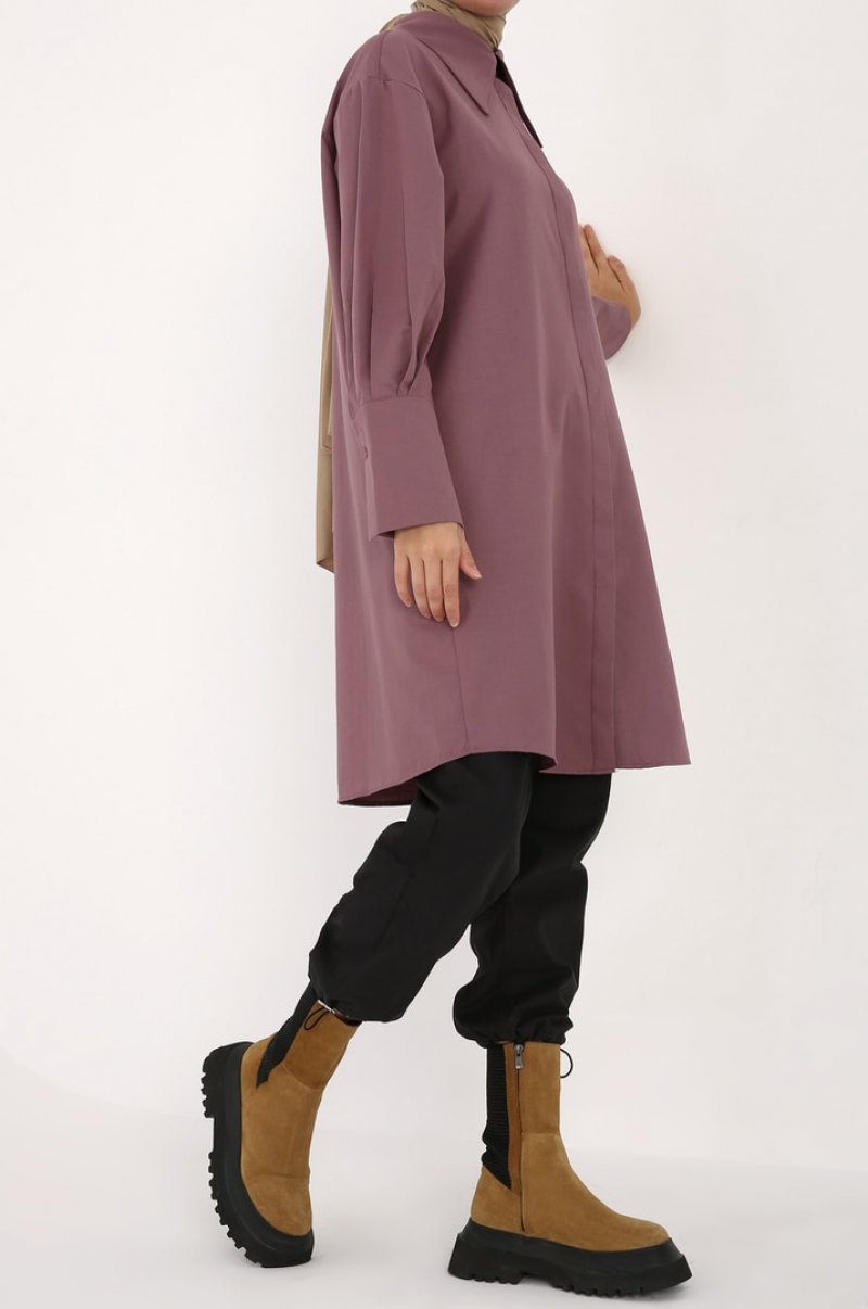Allday Leylak Katlanabilir Manşetli Tam Boy Açılan Gömlek Tunik
