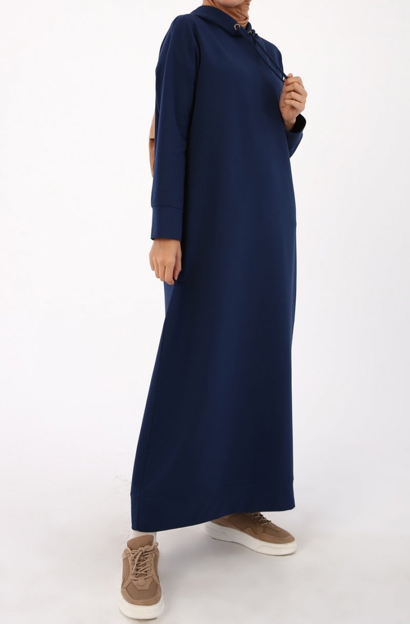 Allday Mavi Koyu Basic Kapüşonlu Örme Pamuklu Elbise