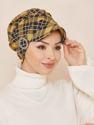 Tofisa D1 Sarı Ekoseli Şapka Bone