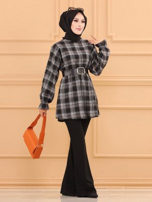 Tofisa Gri Ekose Desenli Tunik
