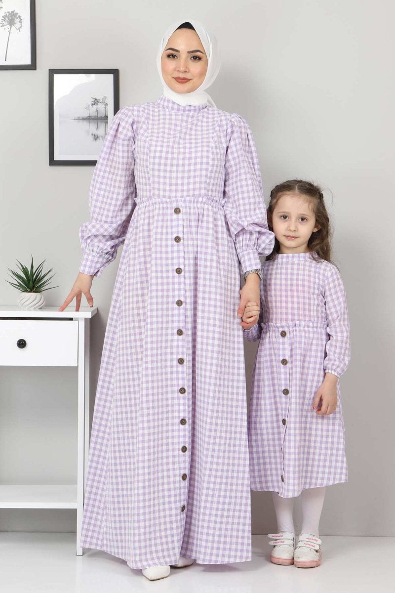 MISSVALLE Lila Ekoseli Düğmeli Anne Elbise