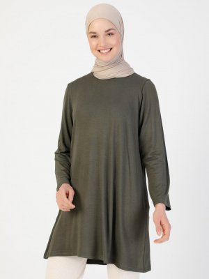 Esra Üstün Haki Basic Uzun Kollu Tunik