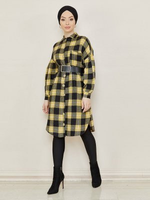 Tofisa Sarı Kareli Tunik