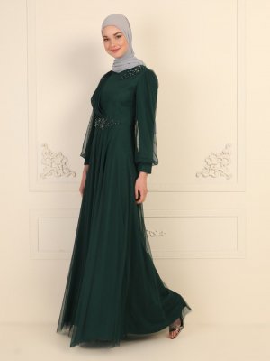 ENSANUR MODA Yeşil Önü Taşlı Abiye Elbise