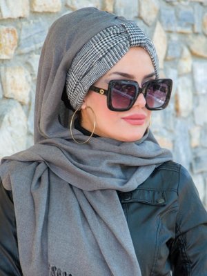AİŞE TESETTÜR Füme Ekoseli Hazır Şal