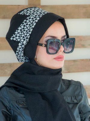 AİŞE TESETTÜR Siyah Beyaz Detay Bere
