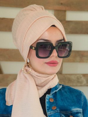 AİŞE TESETTÜR Açık Somon Fitilli Atkılı Bone