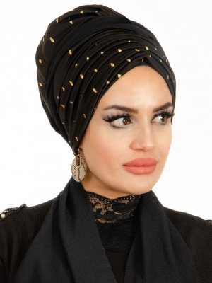 AİŞE TESETTÜR Siyah Gold Hazır Türban