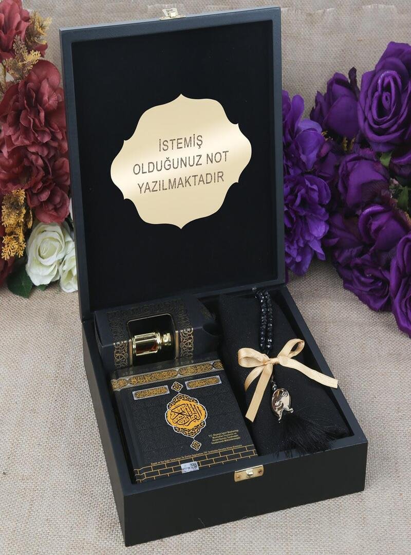 İkranur I Kerim, Şal, Tesbih, Esans Ahşap Kutulu Set Hediyelik Kur\'an