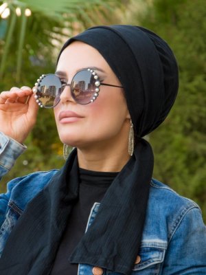 AİŞE TESETTÜR Siyah Atkılı Bone