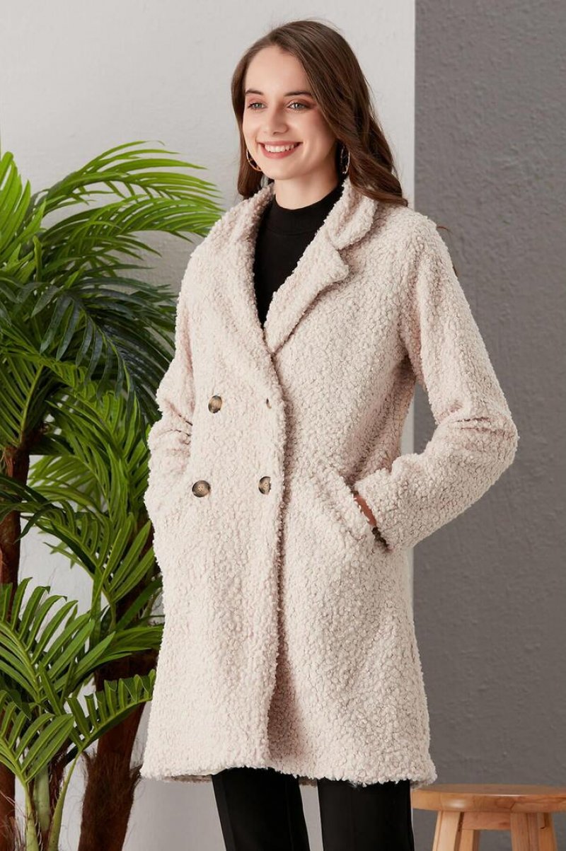 MOSSTA Ekru Italian Kıvırcık Dokulu Astarlı Kaban