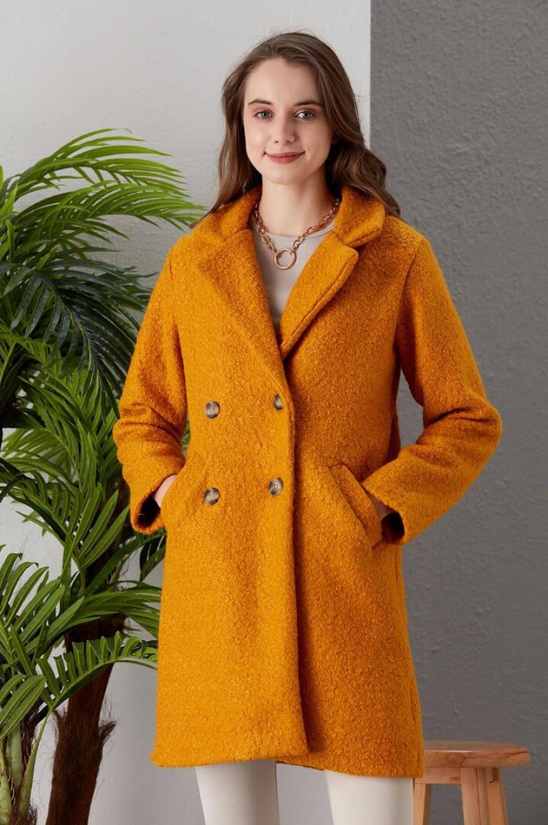 MOSSTA Hardal Italian Kıvırcık Dokulu Astarlı Kaban