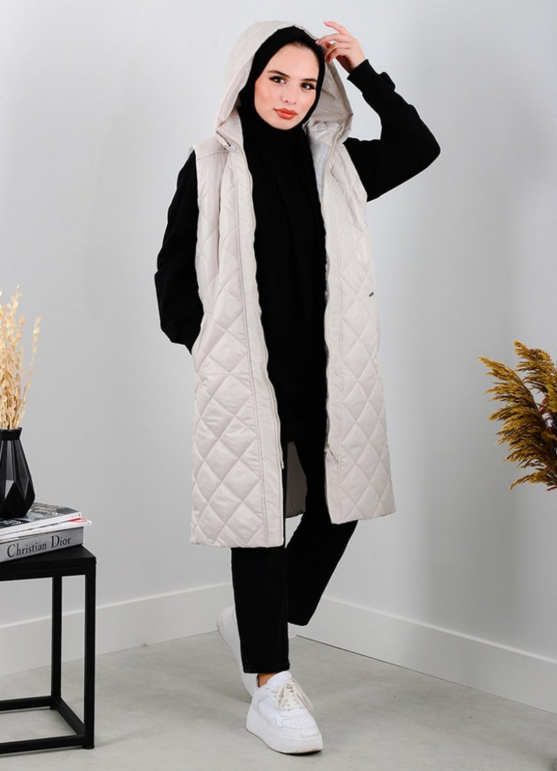 Minel Gri Kapüşonlu Kapitone Detaylı Yelek