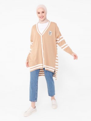 Benin Bisküvi Arkası Uzun Çizgili Triko Hırka