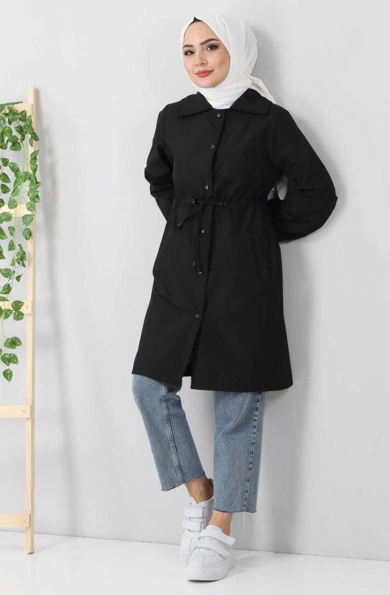 Tesettür Dünyası Siyah Çıtçıt Detaylı Kısa Kap
