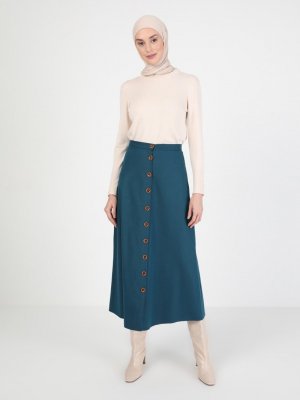Rabia Karancı Petrol Düğme Detaylı Etek