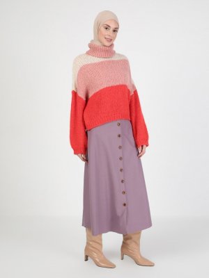 Rabia Karancı Gül Kurusu Düğme Detaylı Etek