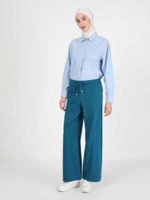 Rabia Karancı Petrol Beli Lastikli Pantolon