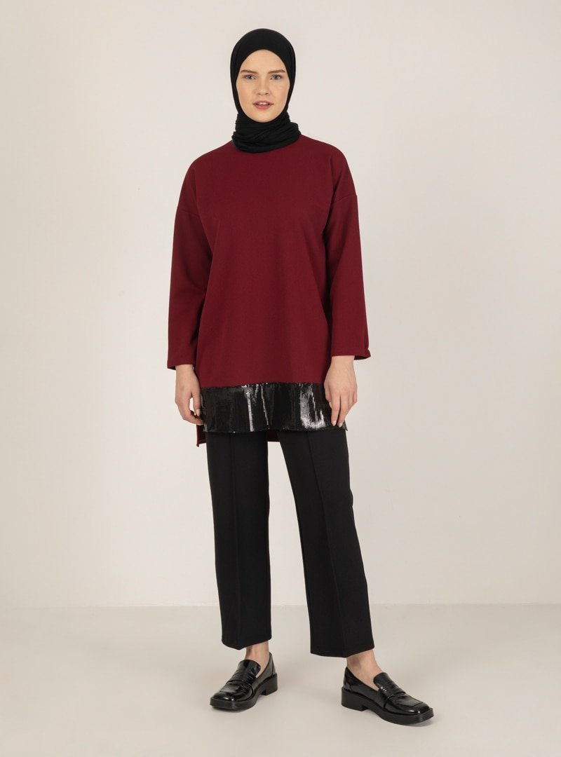 ONX10 Siyah Bordo Tunik & Pantolon İkili Takım