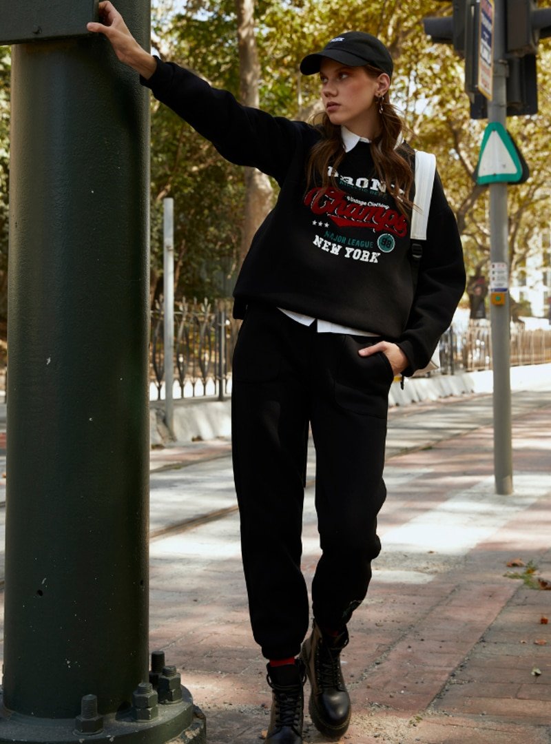 BASICPARK Siyah Champs Nakışlı Oversize Alt Üst Takım