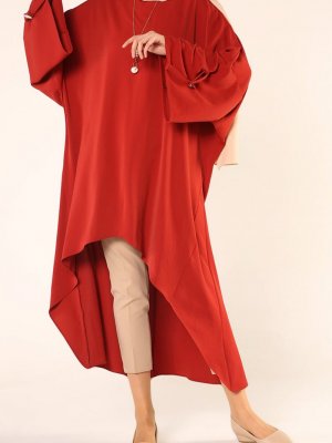 Allday Bordo Asimetrik Kesim Yarasa Kol Salaş Tunik
