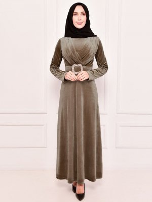 AYŞE MELEK TASARIM Taba Anvelop Pileli Abiye Elbise