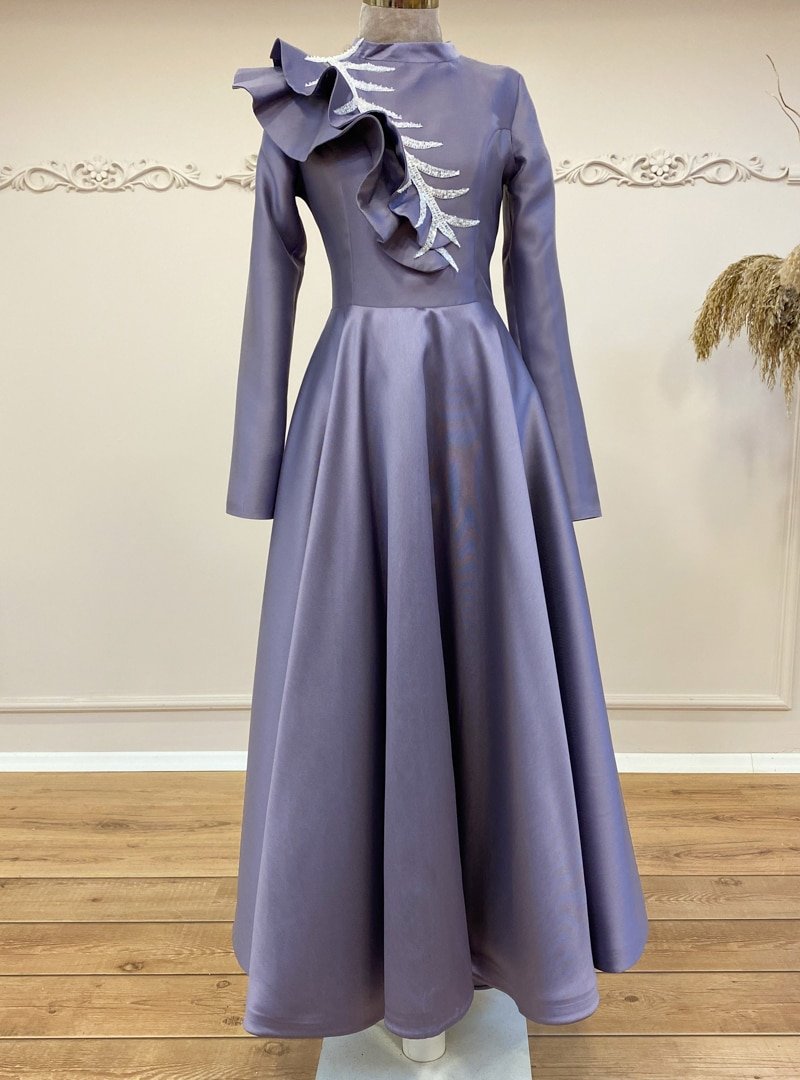 Gamze Özkul Lavanta Orkide Midi Boy Abiye Elbise