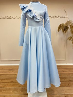 Gamze Özkul Bebe Mavi Orkide Midi Boy Abiye Elbise