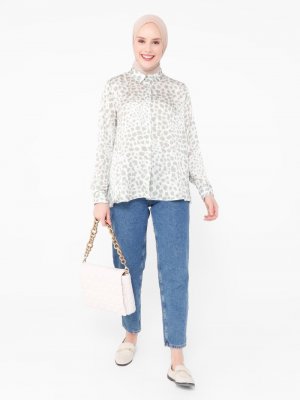 Refka Su Yeşili Gizli Düğmeli Desenli Gömlek