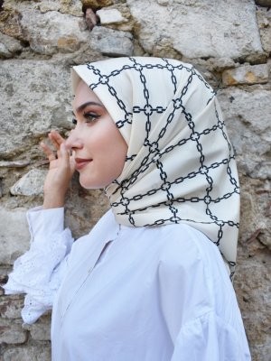 Mapolien Krem Siyah Desenli Twill Eşarp