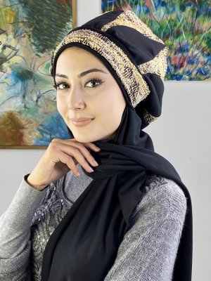 BUTİK AMBAR Sarı Kırçıllı Badem Model Tokalı Atkılı Bere Şal