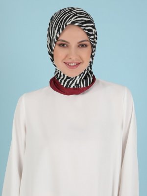Akel Bordo Siyah Pes Twill Baskılı Eşarp