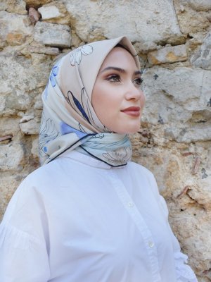 Mapolien Lacivert Bej Twill Eşarp