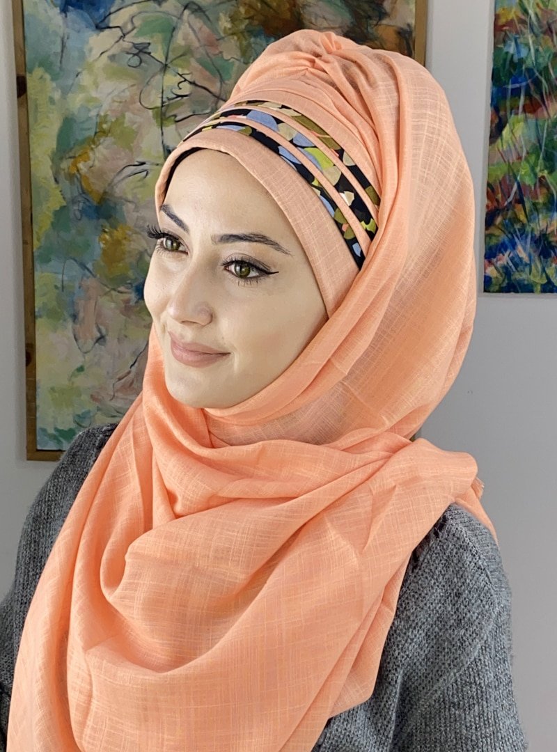 BUTİK AMBAR Açık Somon Asimetrik Çok Renkli Drapeli Hazır Şal