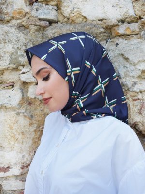 Mapolien Lacivert Altın Twill Eşarp