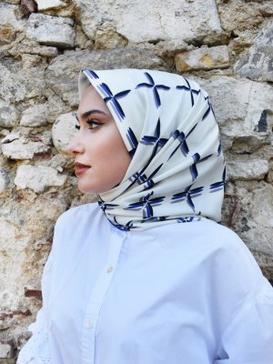 Mapolien Krem Lacivert Twill Eşarp