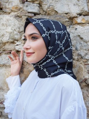 Mapolien Siyah Beyaz Twill Eşarp