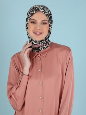 Akel Gül Pudra Pes Twill Baskılı Eşarp