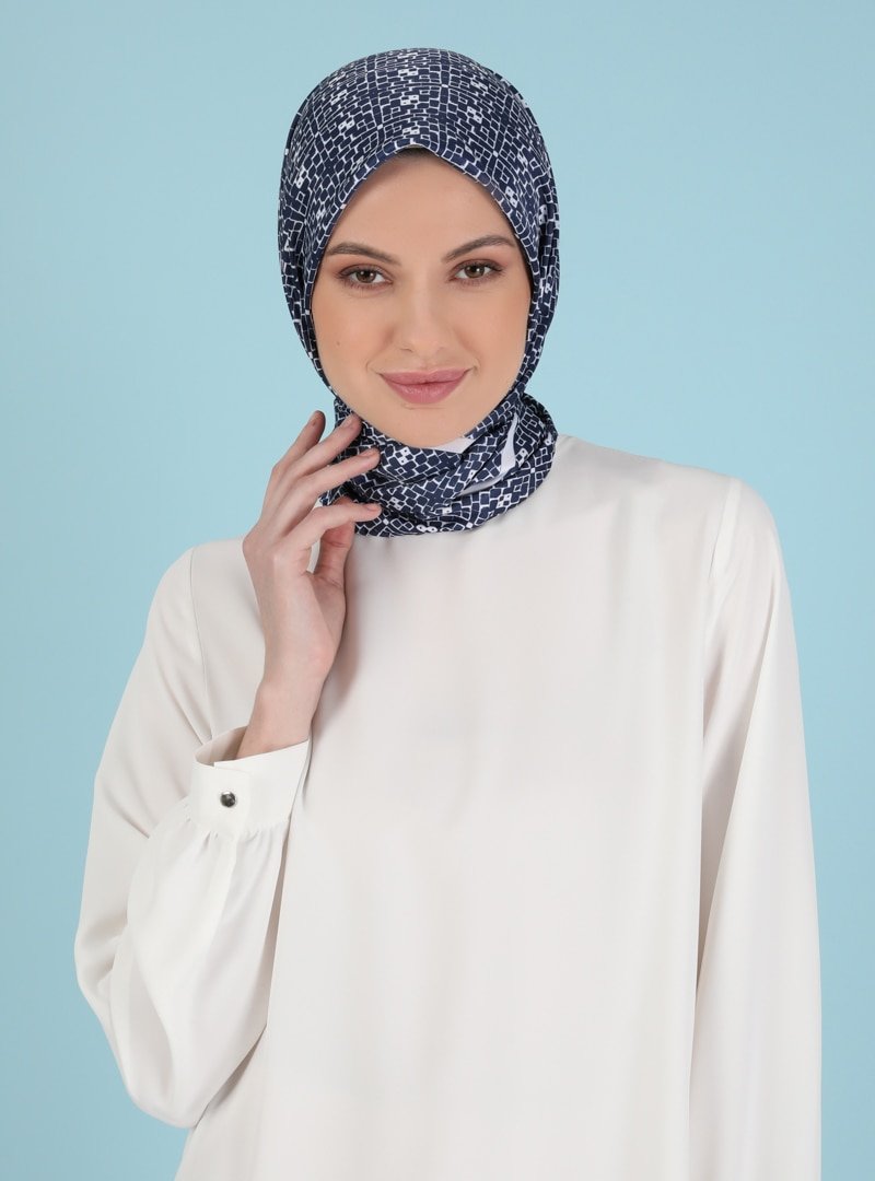 Akel Lacivert Beyaz Pes Twill Baskılı Eşarp